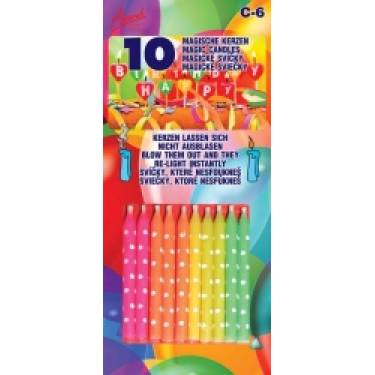UNVERBRENNBARE Tortenkerzenensatz 10 Stück bunt mit Punkten inklusive Zahnstocher
