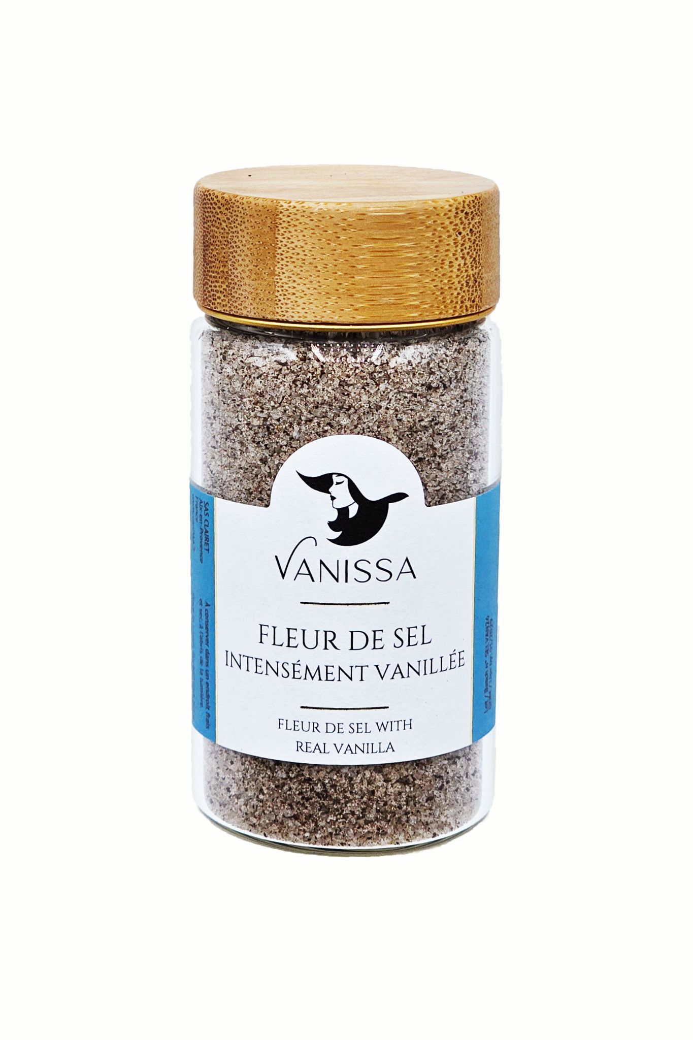 Fleur de Sel (französisch „Kraut Salz“?) ist handernte Meersalz, das auf der Oberfläche von Salzböden gebildet wird und von Arbeitskräften gesammelt wird, die nur die oberste Salzkante freilegen. Fleur de Sel, reich an Mineralien und hervorragenden geschmacklichen Eigenschaften, gehört zu den teuersten Salzen der Welt. Unser Fleur de Sel wird an der Küste Bretagny (Frankreich) gesammelt und mit Premium gemahlenen Vanilleschoten kombiniert. Vanille Fleur de Sel passt hervorragend zu Meeresfrüchten und Geflügel und passt auch gut zu süß-sauren Gerichten. Vanilla Fleur de Sel ist auch hervorragend für die Herstellung von Karamell aus Vanilleschoten, Foie Gras und sogar der beste Margarita-Rimmer überhaupt.