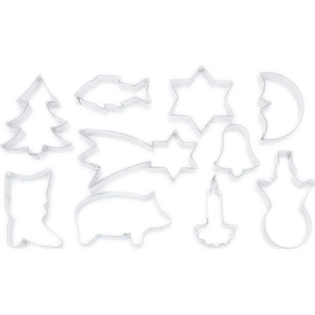 Eine Reihe von Stempeln aus hochwertigem Weißblech, die thematisch auf die Weihnachtsfeiertage und alles, was damit zusammenhängt, ausgerichtet sind. Die Mischung aus größeren und kleineren Motiven bietet eine reiche Auswahl, nach der Dekoration werden sie