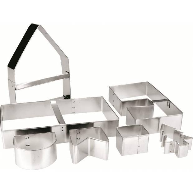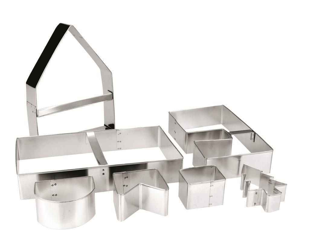 Připravte si pro své strávníky nápadité cukrářské dílo. Perníkovou chaloupku se stromem. Originálního výsledku se domůžete s pomocí těchto vykrajovátek, které představují jednotlivé konstrukční prvky chaloupky. Nerezová sada je omyvatelná v myčce na nádobí. Její velikost je 19x22cm.
