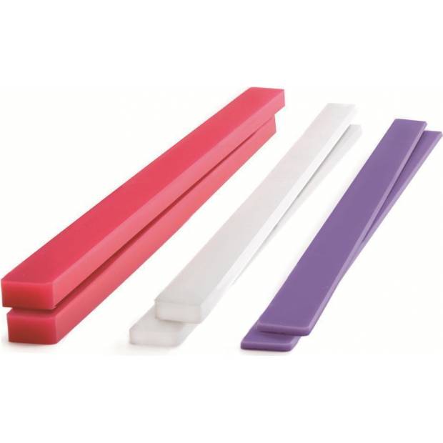 Stäbe für gleichmäßiges Ausrollen von Marzipan- und Fondant-Massen. Sichert, dass die ausgerollte Masse gleichmäßig ausgerollt wird. Höhe der Stäbe - 3 mm, 5 mm und 10 mm.