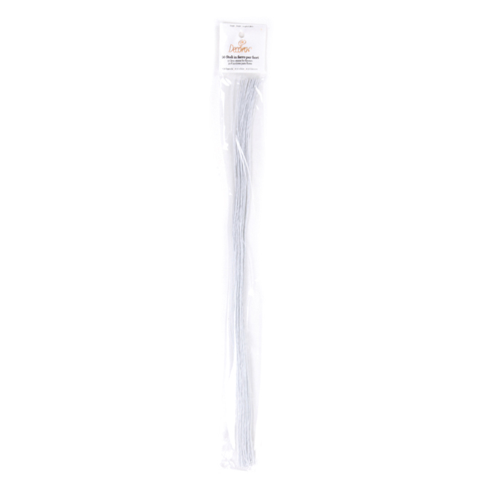 Weiße Blumen-Drahtstücke bestehen aus mittelstarkem Draht und sind mit Papier überzogen. Geeignet zum Beispiel zum Formen von Blüten aus Gumpaste. Die Drahtlänge beträgt 40 cm. Im Packung 50 Stück.
