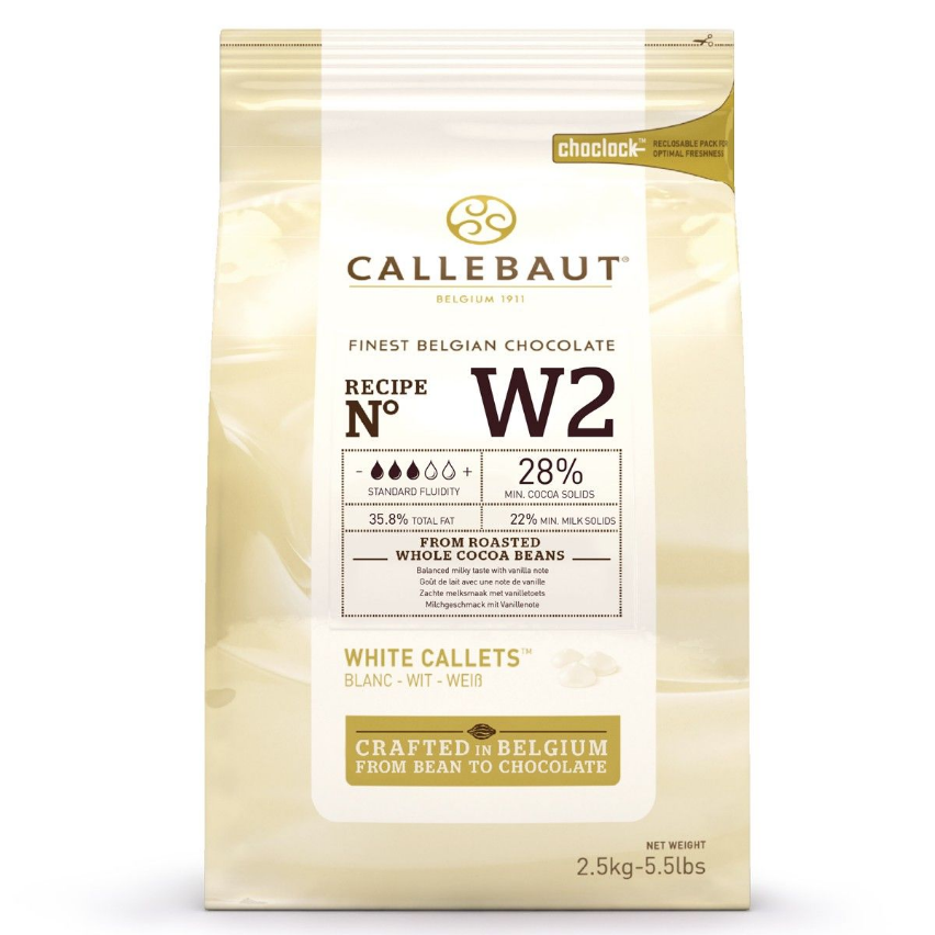 Weiße Schokolade W2, 28 %. Verpackung 2500 g.