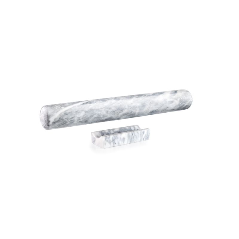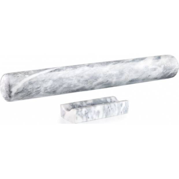 Dieser Walzenstab der Marke Ibili besteht aus weißem Marmor, was zwei große Vorteile mit sich bringt: der Teig klebt beim Ausrollen weniger und der Walzenstab bleibt angenehm kühl — ideal zum Arbeiten mit Butterzucker-Teig oder Fondant. Durch eine Länge von 35 cm und einen Durchmesser von 4 cm ist der Walzenstab gut zu handhaben und eignet sich sowohl für kleinere Konditorprojekte (Kekse, Linzer Augen, Lebkuchen) als auch für Kuchen, Teigtaschen oder Verzierungen.