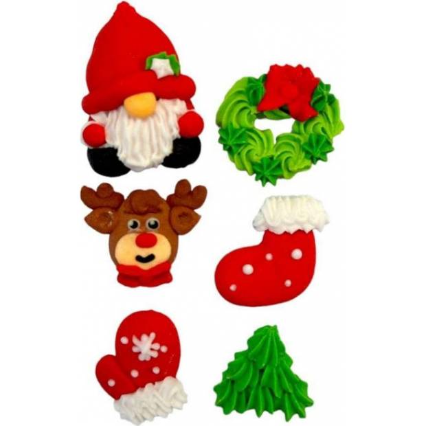 Eine Mischung aus Zuckerstücken mit weihnachtlichen Motiven ist ideal zum Dekorieren von kleinen und mittelgroßen Kuchen sowie weiteren interessanten Konditoreiprodukten für jedes Kind. Jedes Stück ist bereit für die direkte Anwendung auf den Kuchen, ohne weitere Bearbeitung.