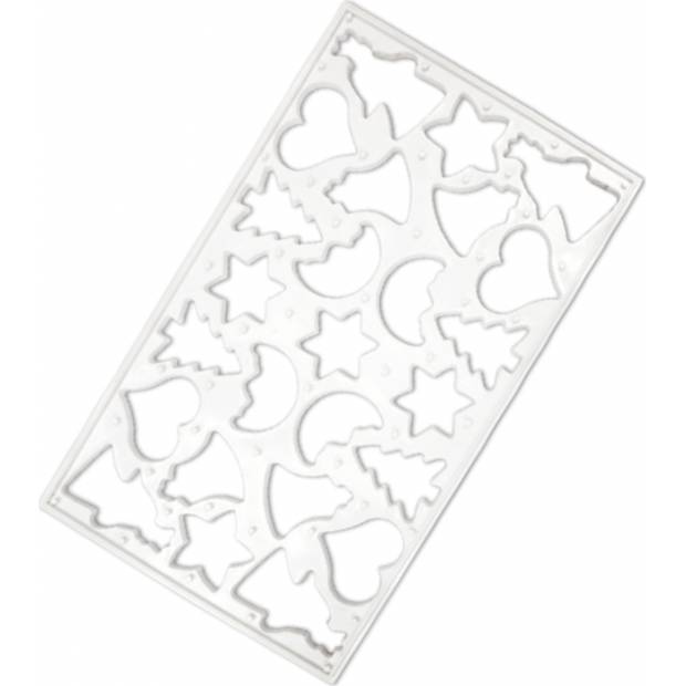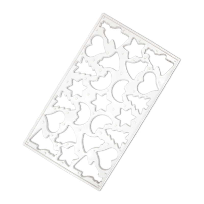 Form enthält eine ganze Reihe von Weihnachtsmotiven von Sternchen bis zu Tannenbäumen. Kunststoff-Ausstechformen eignen sich nicht nur für Lebkuchen und Weihnachtskekse, sondern auch für Plätzchen oder Marzipan.