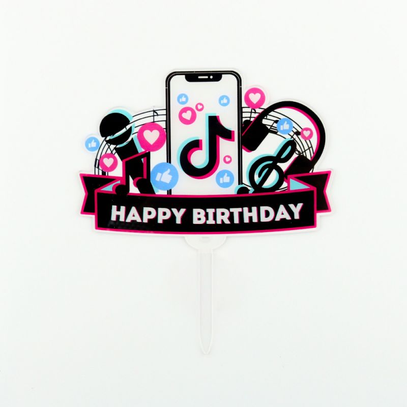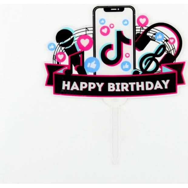 Für Teenager gibt es hier einen tollen Cake-Topper mit TikTok-Motiv. Er besteht aus gesundheitlich unbedenklichem Kunststoff.