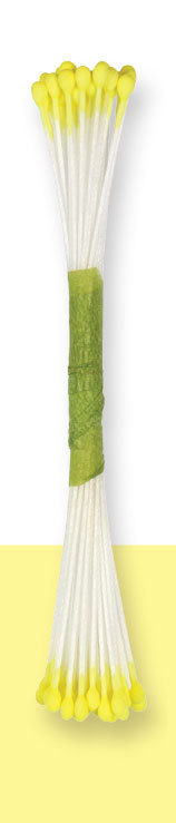 Set Matt-Dekorative Stecknadeln mit einem Durchmesser von 0,2 mm. Die Stecknadeln werden für die Herstellung einfacher bis komplexer Blüten verwendet. Sie haben ein zitronengelben Ende.