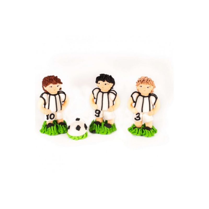 Zuckerfiguren in Form von Fußballspielern mit Schuhen.