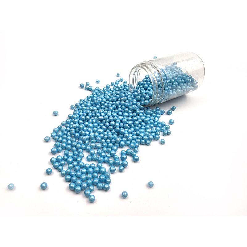 Blau glänzende Perlen aus Reismalz hergestellt. Sie sind perfekt zum Verzieren von Kuchen, Eis, Backwaren und Lebkuchen. Entdecken Sie den Zauber dieser Perlen, der jedes Dessert zu einem Kunstwerk macht. Sie sind mehr als nur Dekoration – sie sind kleine Akzente, die Ihren süßen Kreationen Glanz und Einzigartigkeit verleihen. Sie bestehen aus hochwertigsten Zutaten. Ihre Oberfläche ist eine innovative Dekorationsmethode, die sich von herkömmlichen essbaren Dekorationen abhebt. Wenn Sie die Dekoration über einen weichen Cremeschaum streuen, kann die Feuchtigkeit ihn aufweichen. Aber Vorsicht: Wenn die Dekoration länger auf feuchter Creme liegt, kann sich aus dem Streu auch Farbstoff lösen und dies auf der Oberfläche der Creme erscheinen. Wenn Sie möchten, dass größere Dekorationsstücke beispielsweise auf einer Torte haften, können Sie diese Art von Verzierung mit halbtrockenen Schokoladen oder Zuckerguss für Lebkuchen befestigen. Arbeiten Sie mit dem Streu am besten über einer Schüssel oder einem Backblech mit Rand.