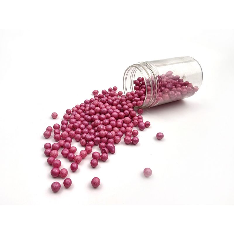 7 mm große dunkelpinkfarbene Perlen sind aus Reismalz hergestellt und Zucker. Sie eignen sich perfekt zum Dekorieren von Kuchen, Eis, Gebäcken und Lebkuchen. Entdecken Sie den Zauber dieser Perlen, die jedes Dessert zu einem Kunstwerk machen. Sie sind mehr als nur Dekoration – sie sind kleine Akzente, die Ihren süßen Kreationen Glanz und Einzigartigkeit verleihen. Sie bestehen aus erstklassigen Zutaten. Ihre Oberflächenbehandlung ist ein innovativer Ansatz zur Dekoration, der sich von traditionellen essbaren Ornamenten abhebt. Wenn Sie die Dekoration über einen zarten Creme verteilen, kann die Feuchtigkeit sie hindurchfeuchten. Aber Vorsicht, wenn die Dekoration länger auf der feuchten Creme bleibt, kann sich aus dem Streudekor auch Farbstoff lösen und das kann die Cremeoberfläche betreffen. Wenn Sie möchten, dass größere Teile der Dekoration an einer Überzugstorte haften, können Sie diese Art von Dekoration mit gehärteter Schokolade oder Zuckerguss auf Lebkuchen befestigen. Arbeiten Sie beim Streudekor am besten über einer Schüssel oder einem Backblech mit Rand.