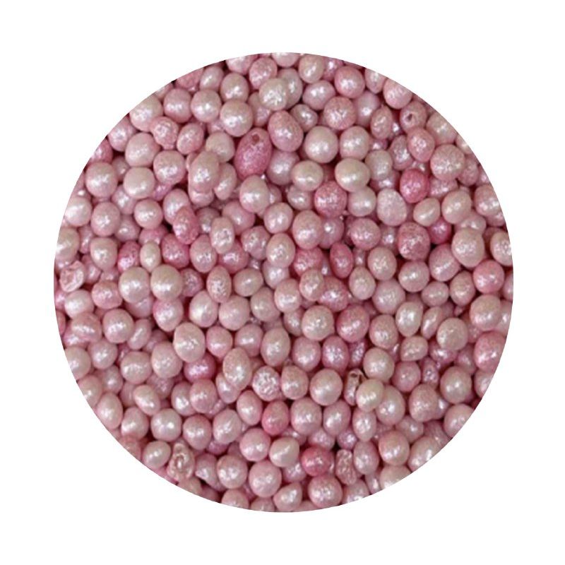 Rosenfarbene Perlen aus Reiskrümeln und Zucker. Sie sind perfekt zum Verzieren von Kuchen, Eis, Snacks und Lebkuchen. Entdecken Sie den Zauber dieser Perlen, die jedes Dessert in ein Kunstwerk verwandeln. Sie sind mehr als nur Dekoration – sie sind kleine Akzente, die Ihren süßen Kreationen Glanz und Einzigartigkeit verleihen. Sie bestehen aus hochwertigsten Zutaten. Ihre Oberfläche ist eine innovative Dekorationsmethode, die sich von herkömmlichen essbaren Schmuckstücken abhebt. Wenn Sie die Verzierung über einen weichen Cremeschaum streuen, kann Feuchtigkeit ihn weichmachen. Aber Vorsicht: Wenn die Verzierung länger auf dem feuchten Creme liegt, kann auch Farbstoff aus dem Streu freigesetzt werden und sich auf der Cremeoberfläche zeigen. Wenn Sie größere Teile der Dekoration beispielsweise auf einer Torte befestigen möchten, können Sie diese Art der Verzierung mit halzarten Schokoladen- oder Lebkuchenglazur auf der Torte befestigen. Arbeiten Sie mit dem Streu am besten über einer Schüssel oder einem Backblech mit Rand.