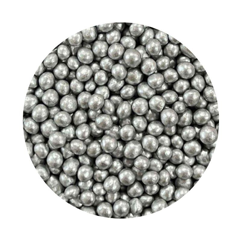 Silberne Perlen aus Reismehlchips und Zucker hergestellt. Sie eignen sich perfekt zum Verzieren von Kuchen, Eis, Backwaren und Lebkuchen. Entdecken Sie den Zauber dieser Perlen, der jedes Dessert zu einem Kunstwerk macht. Sie sind mehr als nur Dekoration – sie sind kleine Akzente, die Ihren süßen Kreationen Glanz und Einzigartigkeit verleihen. Sie bestehen aus hochwertigsten Zutaten. Ihre Oberfläche ist eine innovative Dekorationsmethode, die sich von herkömmlichen essbaren Dekorationen abhebt. Wenn Sie die Verzierung über einen weichen Crem streuen, kann Feuchtigkeit sie erweichen. Aber Vorsicht, wenn die Verzierung länger auf feuchter Creme liegt, kann vom Streu auch Farbstoff freigesetzt werden, der auf die Oberfläche der Creme gelangen kann. Wenn Sie möchten, dass größere Teile der Dekoration beispielsweise auf einer Fondant-Torte haften, können Sie diese Art von Verzierung mit halbtrockenen Schokoladen oder Zuckerguss für Lebkuchen befestigen. Arbeiten Sie mit dem Streu am besten über einer Schüssel oder einem Backblech mit Rand.