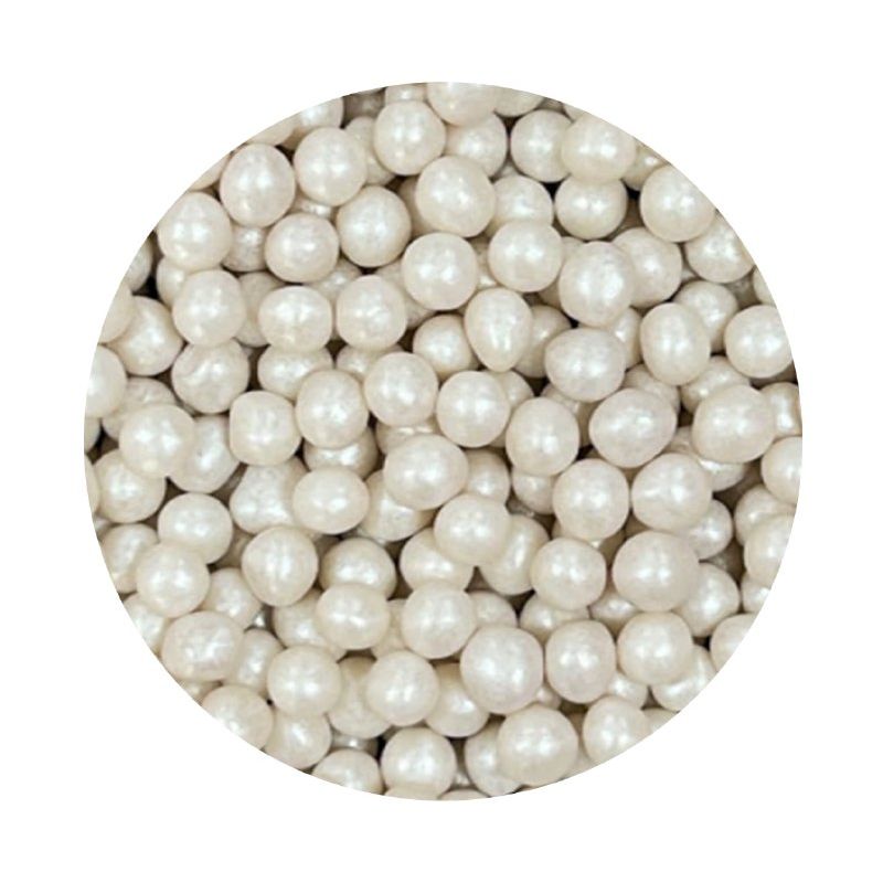 Zuckerreisperlen weiß perlmuttfarbig, groß 7 mm. Verpackung 1 kg.