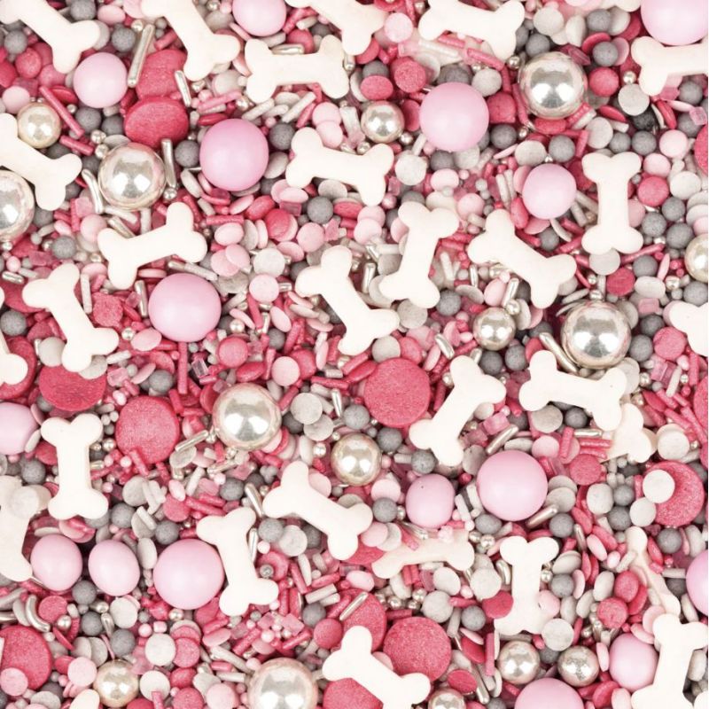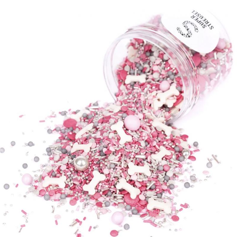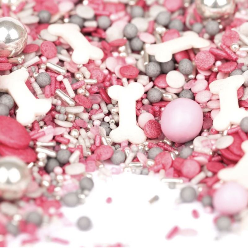 Erreichen Sie mit Ihren Backaufträgen bis ganz an die Spitze. Die Mischung namens Wuffelinchen veredelt Ihre Torten, Cupcakes oder Geburtstagskuchen mutig und verziert diese. Ideal für alle Hundeliebhaber, groß und klein, die Pink lieben und ihrer thematischen Party unseren pelzigen Helden widmen möchten. Kleine Knochen, rosa und graue Konfettimischungen, rosa und silberne Nonpareils und Schokoladenkugeln sind rund um die Uhr bereit für Geburtstagskuchen, thematische Kuchen oder Hundestil-Muffins. Lange Stäbchen enthalten dünne, rohe Nudeln, die mit Zucker überzogen sind. Sie sind zwar einige der hübschesten, aber auch am schwierigsten zu handhabenden unserer Mischungen. Genießen Sie es daher mit Maß. Kugeln: Unsere mittelgroßen und großen Kugeln sind alle köstlich mit zarter Schokolade gefüllt oder knusprig-knusprig. Wunderbar! Mischen: Während des Transports fallen große Streusel und Schokoladenkugeln oft in die Mitte der Dose. Um sich am vollen bestäubten Pracht zu erfreuen, kippen Sie die Dose einfach in eine Schüssel und genießen Sie den Anblick. Zusammensetzung: Zucker, Glukose, Weizenstärke, Kartoffelstärke, Glukosesirup, Sonnenblumenöl, Reismehl, pflanzliches Öl (Kokos), Milchschokolade [Zucker, Kakaobutter, Trockenvollmilch, Kakaomasse, Emulgator: Sojalecithin, natürliches Vanillaroma], Kekslfüllung [Reismehl, Weizenmehl, Zucker, Weizenmalzmehl, Weizenprotein, Salz], Weizenmehl, Stabilisator: Guar-Gummi, Zuckerestersäuren, Agar; Stärke (Reis-/Maisstärke), Kakaobutter, Farbstoffe: E120, E153, E172, E174; Lackstoffe: Lackbienenwachs, Karnaubawachs; Kann Spuren von Nüssen enthalten. Energie- und Nährstoffgehalt pro 100 g: Energie: 1724 kJ/407 kcal; Fett: 3,3 g, davon gesättigte Fettsäuren: 1,5 g; Kohlenhydrate: 93,6 g, davon Zucker: 87,7 g; Proteine: 0,8 g; Salz: 0,02 g
