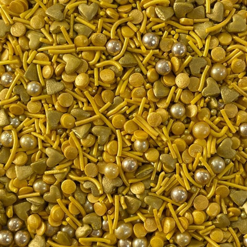 Zuckerstreusel in Form von gelben und silbernen Kugeln, Stäbchen und weiteren Zuckerdekorationen sind eine perfekte Ergänzung für Kuchen, Torten und anderes Gebäck. Die Flocken verleihen jeder Dessertkomposition einen Hauch von Zauber und romantischer Atmosphäre. Dank ihnen können Sie die Köstlichkeit auf eine einzigartige und geschmackvolle Weise genießen. Diese dekorativen Elemente sind perfekt zum Verzieren von Kuchen zu verschiedenen Anlässen, wie Geburtstagen, Weihnachten, aber auch Verlobungen oder Jubiläen; sie verleihen ihnen einen ganz besonderen Zauber und Eleganz. Wenn das Verzieren auf Sahne gestreut wird, kann Feuchtigkeit aus ihr die Streusel weicher machen. Aber Vorsicht, wenn die Verzierung länger auf feuchter Sahne liegt, kann sich auch Farbstoff von den Streuseln lösen und auf die Oberfläche der Sahne gelangen. Möchten Sie, dass der größte Teil der Dekoration z. B. auf einer glatten Torte haftet, können Sie diese Art der Verzierung an Kuchen mit haltrockener Schokolade oder Zuckerguss auf Pfefferkuchen befestigen. Arbeiten Sie mit Streuseln am besten über einer Schüssel oder einem Backblech mit Rand.