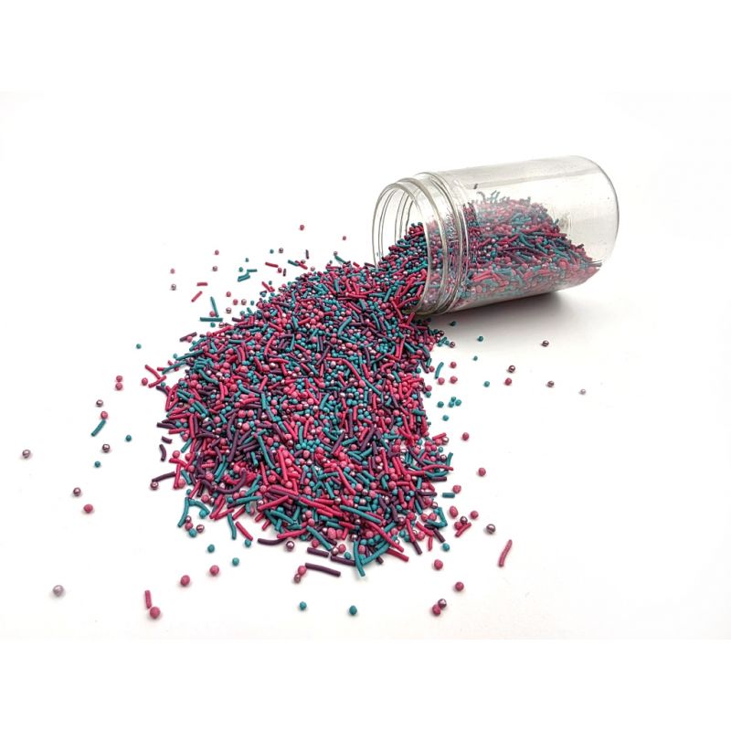 Mix Zuckerstangen und farbiger süßer Zuckerhut. Diese einzigartige Dekoration zieht mit ihrer bunten Farbkombination und dem perfekten Aussehen alle Blicke auf sich. Diese Zucker-Elemente sehen auf Kuchen, Cupcakes, Kuchenstücken, Keksen und anderen Desserts fantastisch aus – ideal für Valentinstag, Verlobung, Hochzeiten und Geburtstage. Durch ihre Form und die leuchtenden Farben kontrastieren diese Herzen schön mit leichten Cremes, Fondant und Schokoladenglasur. Einfach aufzubringen – streuen Sie sie leicht über die Oberfläche des Gebäcks oder ordnen Sie sie in dem von Ihnen gewählten Muster an. Sie eignen sich sowohl für das Hobbykochen zu Hause als auch für professionelle Bäckereien.