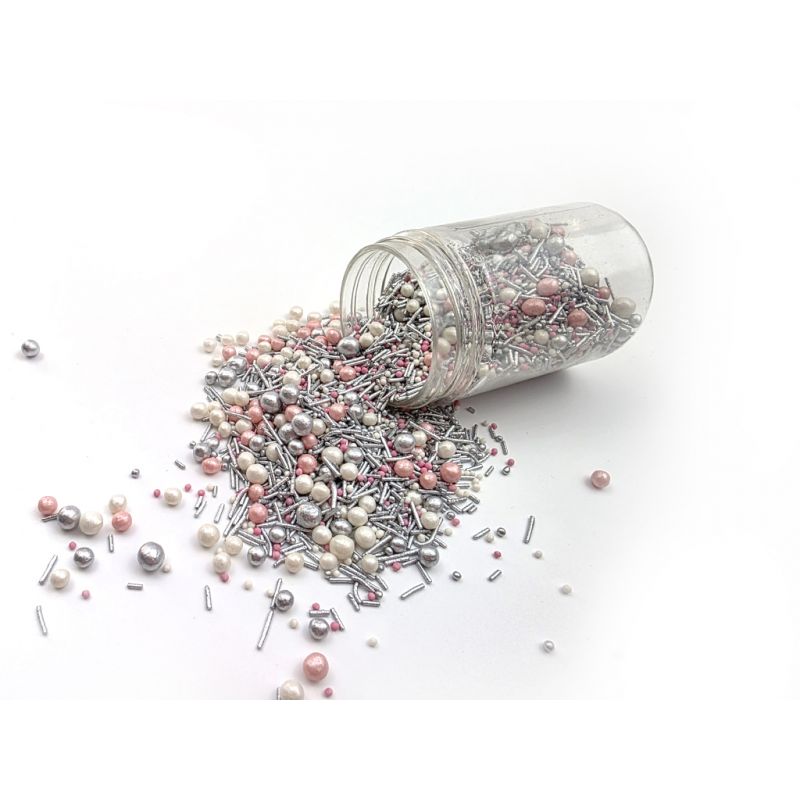 Geben Sie Ihren Kuchen und Desserts eine völlig neue Note mit diesem Streudekor-Mix. Bunte Perlen, silberne Stäbchen und feine Perlenkörner schaffen eine stilvolle Kombinaton, die je nach Belieben verwendet werden kann. Sie können damit Cupcakes, Kuchen und Weihnachtsgebäck dekorieren. Die Streudekorationen sehen auf Tortenaufsätzen oder anderem Gebäck schön aus. Ideal für verschiedene Anlässe, z. B. Geburtstagsfeier, Namenstag, Hochzeit, Empfang, Junggesellenabschied, Feiertage. Die Streudekorationen sind in einem praktischen Behälter verpackt, der eine einfache Dosierung und Lagerung ermöglicht. An einem kühlen und trockenen Ort, außerhalb direkter Sonneneinstrahlung, lagern. Wenn die Dekoration auf eine weiche Creme gestreut wird, kann die Feuchtigkeit die Streus dekorierender weichen. Achtung: Wenn die Dekoration längere Zeit auf feuchter Creme bleibt, kann sich auch Farbstoff aus dem Streudekor lösen und auf die Oberfläche der Creme gelangen. Wenn größere Teile der Dekoration beispielsweise an einer Fondant- oder Zuckerglasur haften sollen, können Sie diese Dekorationsart mit halttrockener Schokolade oder Zuckerguss auf Lebkuchen befestigen. Arbeiten Sie mit Streudekorationen am besten über einer Schüssel oder einem Backblech mit Rand. Zutaten: Weißzucker, Vollkornmehl, Reismehl, Trocken-Eiweiß, Stärkeflüssige Sirupe, raffiniertes Palmöl, modifizierte Stärke, Verdickungsmittel: E412, E415, E466, E414; Glanzmittel Kapol (Schellack, pflanzliches Öl), Talkum, Säureregler Zitronensäure (E330), Konservierungsmittel Sorbinsäure (E200), Lebensmittelaroma „Vanille“, Lebensmittelfarbstoffe: E122, E174, E124. Nährwertangaben pro 100 g Produkt: Fett 3,4 g, davon gesättigte Fettsäuren 0,19 g, Kohlenhydrate 84,6 g, davon Zucker 59 g, Eiweiß 3,6 g, Salz 0,001 g. Energiereiche Werte pro 100 g Produkt: 375 kcal (1537 kJ).