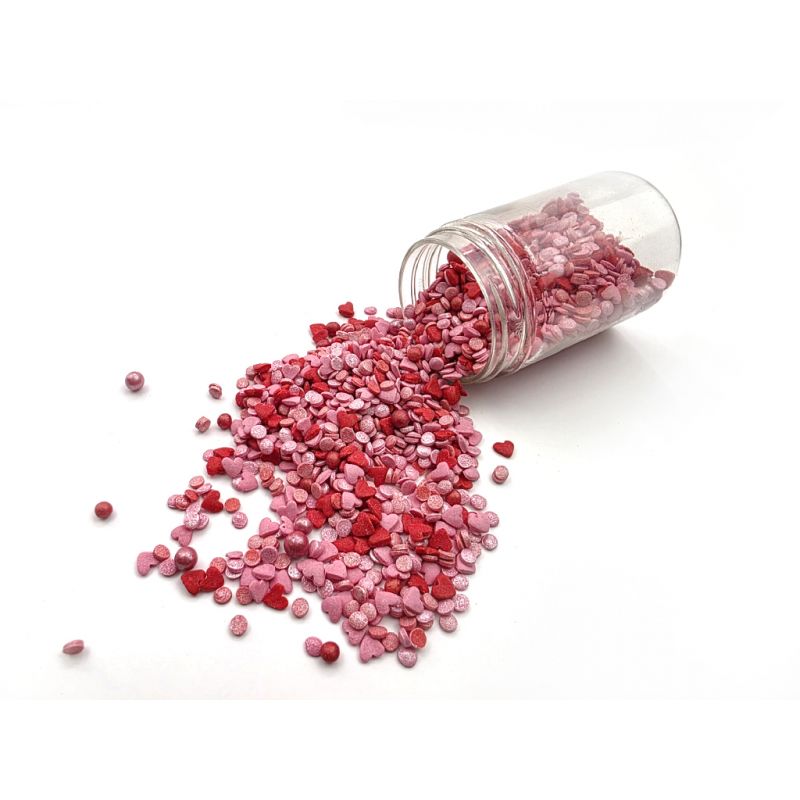 Du musst originell, köstlich und ansprechend verzierte Backdekoration nicht mehr suchen, die dein Valentinsgebackenes lebendig macht. Unsere dekorativen Zuckerstreudekorationen in Form roter und rosa Herzen sowie eine bunte Perlenmischung sind die perfekte Lösung für Valentinstag und andere Anlässe! Diese charmanten Herzchen-Streudekorationen verleihen deinen Keksen, Torten, Cupcakes und weiteren Desserts eine einzigartige Note. Rote und rosa Herzen sind ein Produkt, das sich durch ein dezentes, elegantes Erscheinungsbild und außergewöhnlichen Geschmack auszeichnet. Ihre schöne Farbe wird die perfekte Ergänzung für Valentinsdekorationen und andere Anlässe sein. Zudem eignen sie sich aufgrund ihrer kleinen Größe sowohl für großes Gebäck als auch für feine Kekse oder Bento-Torten. Anwendung: - Dekoration von Torten, Gebäck, Cupcakes, Desserts und Bento-Torten - Dekoration von Keksen, Lebkuchen und Cake Pops - Ideal für Eis und weitere süße Leckereien - Ideal für Valentinstag, Verlobungen und Jubiläen.