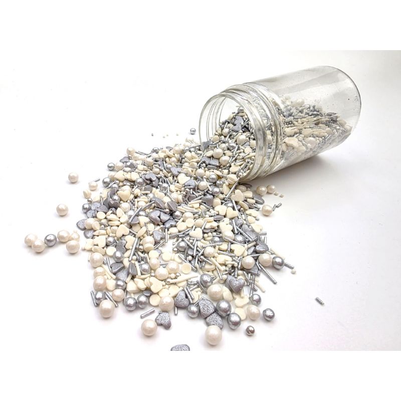 Origineller Zuckerstreusel Morning Dew ist die perfekte Ergänzung für alle Arten von festlicher Backwaren. Ob Kuchen, Muffins, Lebkuchen oder andere Süßigkeiten – dieses Glasur verleiht ihnen eine festliche Note. Der Streusel ist eine Mischung aus Zuckerstreuseln in Form von weißen und silbernen Herzchen, Stäbchen und Perlen. Morning Dew ist eine Mischung aus silbernen und weißen Farben. Jede dieser Farben passt perfekt zu euren festlichen und Geburtstagsdekorationen, und eure Backwaren werden noch eindrucksvoller aussehen. Die Packung enthält bis zu 80 Gramm dieses einzigartigen Streusels. Das reicht, um viele Backwaren zu verzieren und eine einzigartige festliche Atmosphäre auf eurem Tisch zu schaffen. Mit diesem Produkt könnt ihr nicht nur den Geschmack, sondern auch die Ästhetik eurer gebackenen Delikatessen genießen. Die Streusel lassen sich einfach verwenden – einfach auf den fertig gebackenen Kuchen oder Muffin streuen und den Effekt bewundern.