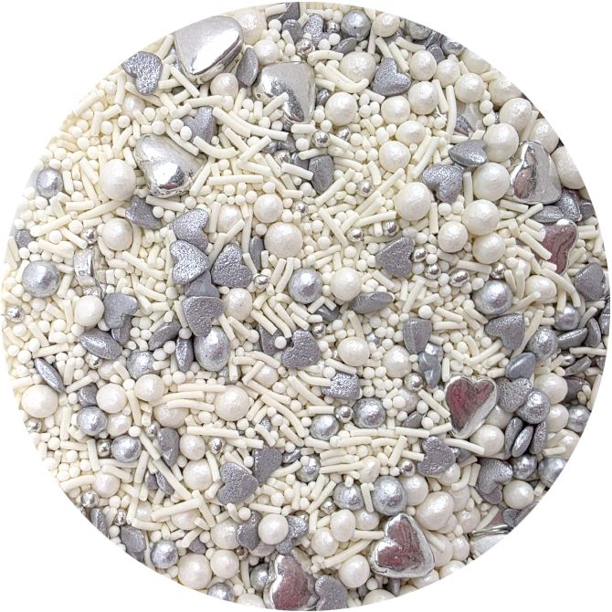 Geben Sie Ihren Kuchen und Desserts mit dieser Zuckerstreudekoration eine völlig neue Note. Weiße und silberne Perlen, Zuckerstäbchen und feiner Körnchen-Maße bilden eine stilvolle Kombination, die je nach Belieben verwendet werden kann. Damit können Sie Cupcakes, Kuchen und Weihnachtsgebäck dekorieren. Die Streudekorationen sehen auf Torten oder anderem Gebäck wunderschön aus. Ideal für verschiedene Anlässe, z. B. Geburtstagsfeier, Namenstag, Hochzeit, Kommunion, Junggesellenabschied, Feiertage. Die Streudekorationen sind in einem praktischen Behälter verpackt, der eine einfache Dosierung und Lagerung ermöglicht. An einem kühlen und trockenen Ort außer direkter Sonneneinstrahlung lagern. Wenn die Verzierung auf eine feuchte Creme gestreut wird, kann die Feuchtigkeit die Streudekorationen erweichen. Aber Vorsicht: Wenn die Verzierung längere Zeit auf feuchter Creme bleibt, kann sich auch Farbstoff aus der Streudekoration lösen und auf die Oberfläche der Creme gelangen. Wenn größere Teile der Dekoration beispielsweise auf einer Fondant- oder Schleimglasur haften sollen, können Sie diese Art der Dekoration mit haltrockener Schokolade oder Zuckerguss für Kuchen befestigen. Arbeiten Sie mit Streudekorationen am besten über einer Schüssel oder einem Backblech mit Rand. Zutaten: weißer Zucker, Vollkornmehl, Reismehl, trockenes Eiweiß, Stärkeflüssigkeit, raffinierte Palmöl, modifizierte Stärke, Verdickungsmittel: E412, E415, E466, E414; Glanzmittel Kapol (Schellack, Pflanzenöl), Talkum, Säureregler Zitronensäure (E330), Konservierungsmittel Sorbinsäure (E200), Lebensmittelaroma "Vanille", Lebensmittelfarbstoffe: E122, E174, E124 Nährwertangaben pro 100 g Produkt: Fettstoffe – 3,4 g, davon gesättigte – 0,19 g, Kohlenhydrate – 84,6 g, davon Zucker – 59 g, Proteine – 3,6 g, Salz – 0,001 g Energiewert (Kalorien) pro 100 g Produkt: 375 kcal (1537 kJ).