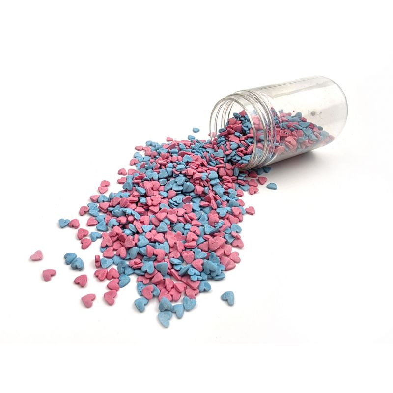 Zuckerstreusel in Form von rosa und blaue Herzchen sind die perfekte Verzierung für Kuchen, Torten und anderes Gebäck. Die zarten Perlenherzen verleihen jeder Dessertkomposition Zauber und eine romantische Atmosphäre. Dank ihnen können Sie Liebe und Herzlichkeit auf einzigartige und geschmackvolle Weise ausdrücken. Die Konfetti-Zuckerstreusel Rosa Perle sind perfekt zum Verzieren von Kuchen zu verschiedenen Anlässen wie Geburtstag, Valentinstag, Verlobung oder Jubiläum; sie verleihen ihnen einen einzigartigen Charme und Eleganz. Wenn Sie die Verzierung auf eine feuchte Creme streuen, kann die Feuchtigkeit die Streusel erweichen. Aber Vorsicht: Wenn die Verzierung länger auf der feuchten Creme liegt, kann sich auch Farbstoff aus den Streuseln lösen und dies auf die Cremeoberfläche übertragen. Wenn Sie möchten, dass größere Teile der Dekoration beispielsweise auf einer Fondant-Torte haften bleiben, können Sie diese Art der Dekoration mit halbstarrer Schokolade oder Zuckerguss für Lebkuchen befestigen. Arbeiten Sie mit Streuseln am besten über einer Schüssel oder einem Backblech mit Rand.