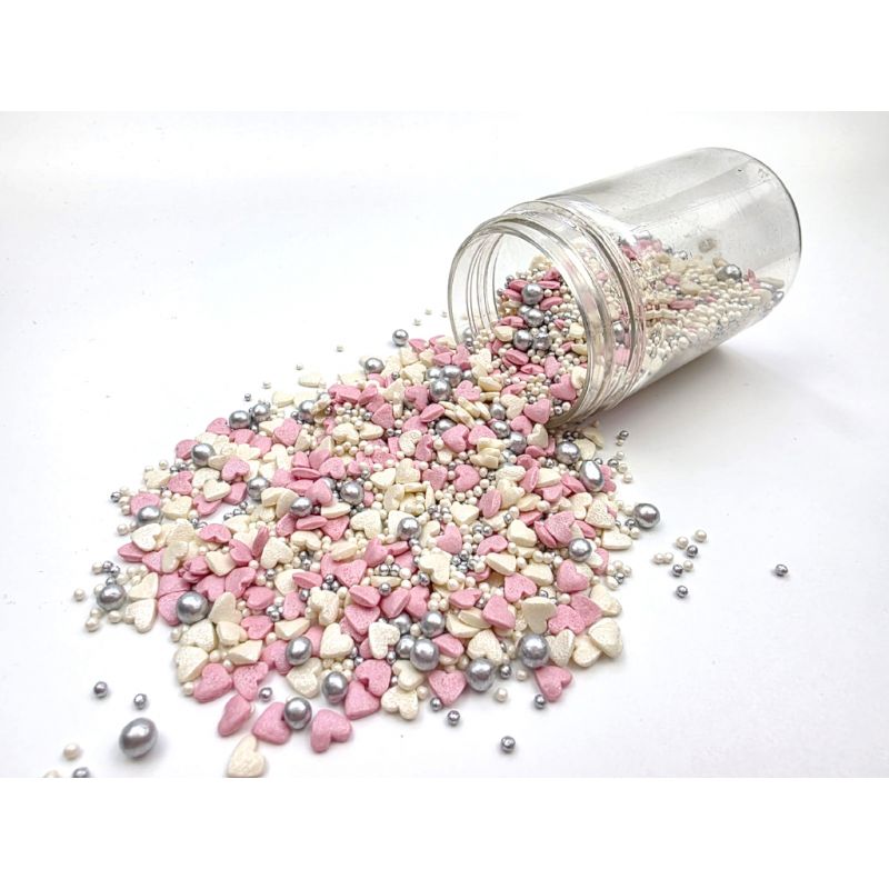 Zuckerdekoration ist eindeutig ein unverzichtbares Element der Dekoration jeder Backware. Die Streudekoration in Herz- und Perlenformen passt definitiv zu allem. Sie ist süß, überdeckt aber nicht den Geschmack des Hauptkaufs. Deshalb spricht sie jeden an, auch die anspruchsvollsten Verbraucher. Warten Sie nicht und besorgen Sie sich Vorräte verschiedener Streu-Sets aus unserem Angebot. Wie der Name schon sagt, haben die Streuherzen die Form kleiner Herzen. Diese Vielfalt gibt Ihnen die Sicherheit, dass die Herzen zu jeder Dekoration passen. Ihr süßer und universeller Geschmack wird alle Gäste auf der Party ansprechen. Aus eigener Erfahrung wissen wir, dass Backwaren, die mit dieser Dekoration bestreut sind, schnell verschwinden. Zum Backen werden die Herzen eine wunderbare Ergänzung sein, die nicht dominiert, sondern den Geschmack hervorhebt. Wenn Sie die Dekoration auf eine luftige Creme streuen, kann die Feuchtigkeit sie etwas weicher machen. Aber Vorsicht, wenn die Dekoration längere Zeit auf der feuchten Creme bleibt, kann sich auch Farbstoff von der Streu lösen und auf die Oberfläche der Creme gelangen. Wenn Sie möchten, dass größere Teile der Dekoration beispielsweise auf einer Fondant-Torte haften, können Sie diese Art der Dekoration mit Halbtrockenschokolade oder Zuckerguss auf Lebkuchenkleidchen ankleben. Arbeiten Sie mit der Streu am besten über einer Schüssel oder einem Backblech mit Rand.