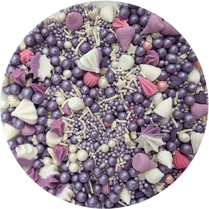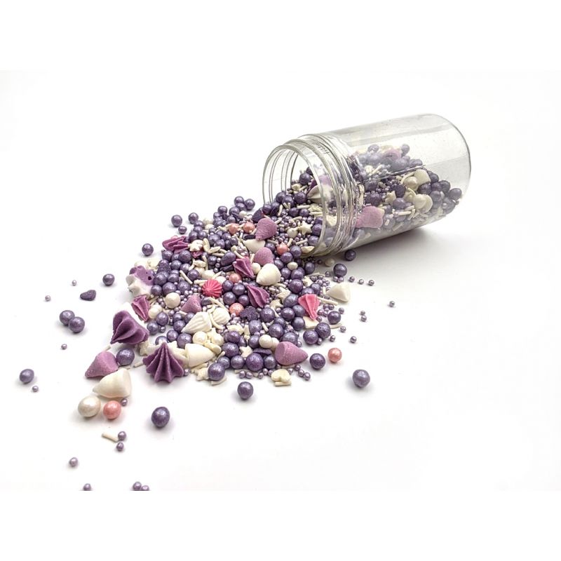 Violetter Streuselsprinkles eignen sich als Ergänzung zu verschiedensten Kuchen, Rollen, Kuchenstücken für Partys, zu Geburtstagen, Taufen usw. I LOVE CAKES Streuselsprinkles in vielen Farben und Formen helfen Ihnen auf interessante Weise beim Garnieren von Muffins, Kuchen, Torten, Desserts, Cake Pops, Keksen und weiteren Süßigkeiten. Die Streusel werden eine schöne Verzierung für Gebäck zu verschiedenen Partys, Jubiläen oder zum Geburtstagskuchen sein. Sie eignen sich hervorragend, um Süßigkeiten für festliche Tafeln vorzubereiten.
