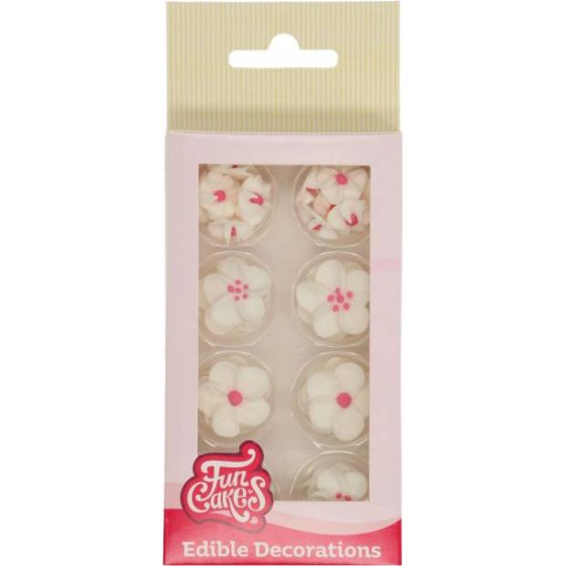 Dekorieren Sie Kuchen oder Cupcakes mit FunCakes Sugar Decoration Blossom Mix White and Pink. Auf diese Weise können Sie Ihren Leckereien ganz schnell passende Themen verleihen. Dieses Set enthält einen Mix aus 32 kleinen und großen weißen und rosafarbenen Blüten. Sie peppen alles Gebäck auf, sind aber natürlich besonders passend zu Ostern, Frühling und Sommer! Zuckerverzierungen von FunCakes können auch in königliche Glasur für Kekse verwendet werden. Trocken lagern, 12-18°C. Farbe: weiß und rosa. Inhalt: 18 große Blüten und 14 kleine Blüten. Größe: Große Blüten Durchmesser ca. 2,3 cm und kleine Blüten Durchmesser 1,5 cm.