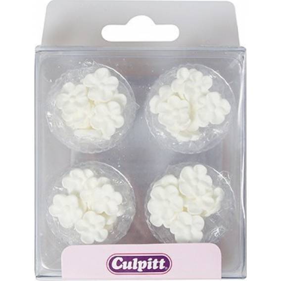 Diese wunderschönen weißen Mini-Blumen werden einzeln handgefertigt aus Zuckerpaste und mit königlicher Glasur versehen. Sie eignen sich hervorragend als Tortendekorationen oder zum Verzieren einer vollen Torte.
