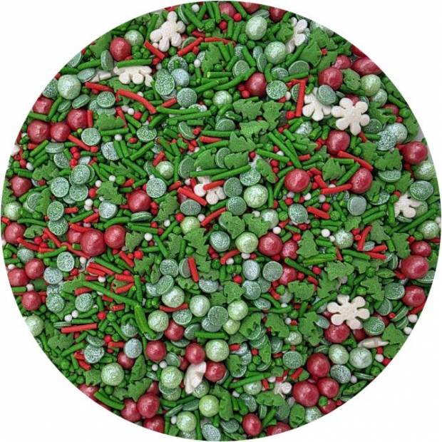 Bestreuen hat die Form eines Mixes aus unterschiedlich großen Perlen und Weihnachtsmotiven. Es handelt sich um eine süße Verzierung aus der Reihe einzigartiger Produkte von ILOVECAKES. Es verändert den Geschmack der dekorierten Produkte nicht, es wird aus natürlichen Farbstoffen hergestellt und schmeckt wie-Zuckerteig. Es ist eine sehr universelle Dekoration, ideal zum Dekorieren von Cupcakes, Keksen, Lebkuchen, Muffins, Torten, Leckereien, Backwaren, Torten, Pralinen, Pralinen, Schokolade, Eis und vielen weiteren süßen Produkten, insbesondere solche mit Cremes und Glasur. Geeignet für jeden Anlass: insbesondere für Weihnachtskuchen und Plätzchen. Verarbeitet in einer praktischen Schraubdeckel-Dose. Wenn Sie die Verzierung auf eine luftige Creme streuen, kann Feuchtigkeit aus ihr die Verzierung erweichen. Aber Vorsicht, wenn die Dekoration länger auf der feuchten Creme liegt, kann sich auch Farbstoff aus dem Streudekor lösen und dies auf der Oberfläche der Creme. Wenn Sie möchten, dass größere Teile der Dekoration beispielsweise auf einem Überzugkuchen haften, können Sie diese Art der Verzierung an Kuchen mit halbtrockenem Schokoladen oder Zuckerguss für Lebkuchen befestigen. Streuen Sie die Streudekoration am besten über eine Schüssel oder ein Backblech mit Rand.