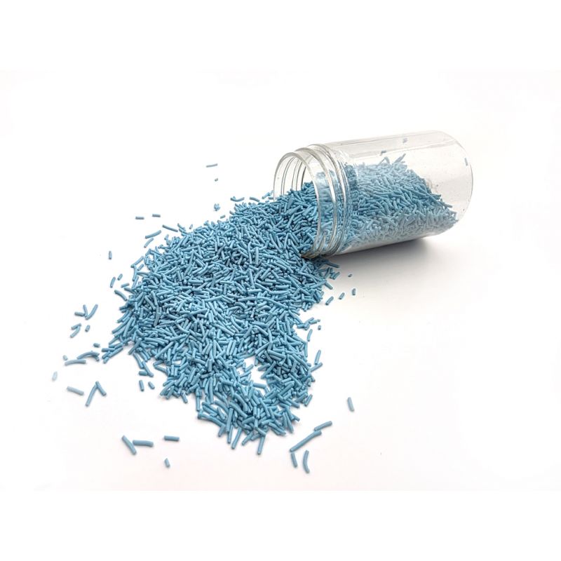 Blaues Zuckerstreusel machen Kuchen, Plätzchen, Cupcakes, Lebkuchen, Tortenstücke und Eis aus Keksen sehr elegant. Sie verleihen Desserts ein perfektes Aussehen. Sie eignen sich für jeden Anlass. Von jetzt an ist das Verzieren von Cupcakes und Torten noch einfacher! Sie werden auch von professionellen Konditoren zum Verzieren von Torten und anderem Gebäck verwendet. Wir haben sie in verschiedenen Farben, Größen und Formen. Dadurch lassen sie sich leicht mit weiteren Details auf dem Gebäck oder Dessert kombinieren. Wenn Sie das Verzieren auf eine luftige Creme streuen, kann Feuchtigkeit aus ihr die Streusel weich machen. Aber Vorsicht, wenn das Verzieren auf der feuchten Creme längere Zeit liegt, kann sich auch Farbstoff aus dem Streusel lösen und auf die Oberfläche der Creme gelangen. Wenn Sie möchten, dass größere Dekor-Teile sich zum Beispiel am überzogenen Kuchen festsetzen, können Sie diese Art der Dekoration mit halbtrocher Schokolade oder Zuckerguss für Lebkuchen am Kuchen befestigen. Arbeiten Sie mit Streuseln am besten über einer Schüssel oder einem Backblech mit Rand. Wenn Sie das Verzieren auf eine luftige Creme streuen, kann Feuchtigkeit aus ihr die Streusel weich machen. Aber Vorsicht, wenn das Verzieren auf der feuchten Creme längere Zeit liegt, kann sich auch Farbstoff aus dem Streusel lösen und auf die Oberfläche der Creme gelangen. Wenn Sie möchten, dass größere Dekorteile sich zum Beispiel am überzogenen Kuchen festhalten, können Sie diese Art der Verzierung am Kuchen mit halbtrocher Schokolade oder Zuckerguss für Lebkuchen befestigen. Arbeiten Sie mit Streuseln am besten über einer Schüssel oder einem Backblech mit Rand.
