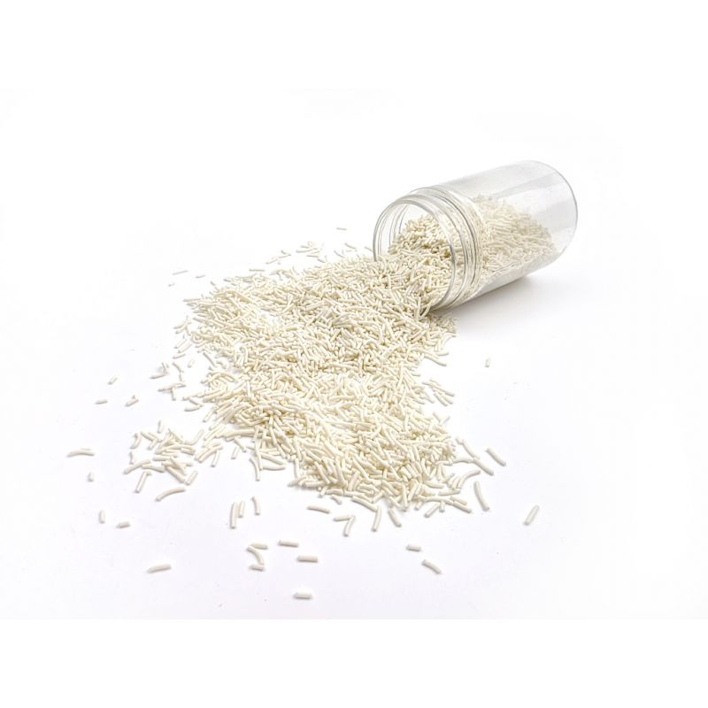 Weiße Zuckerstangen machen Kuchen, Plätzchen, Cupcakes, Lebkuchen, Tortenstücke und Eis aus Keksen sehr elegant. Sie verleihen Desserts ein perfektes Aussehen. Sie eignen sich für jeden Anlass. Von jetzt an ist das Verzieren von Cupcakes und Torten noch einfacher! Sie werden auch von professionellen Konditoren zum Verzieren von Torten und anderem Gebäck verwendet. Wir haben sie in verschiedenen Farben, Größen und Formen. Dadurch lassen sie sich leicht mit weiteren Details auf dem Gebäck oder Dessert kombinieren. Wenn Sie das Verzieren auf eine luftige Sahne streuen, kann die Feuchtigkeit der Sahne die Streuung erweichen. Aber Vorsicht, wenn das Verzieren länger auf der feuchten Sahne liegt, kann sich aus der Streuung auch Farbstoff lösen und dies auf der Oberfläche der Sahne erscheinen. Wenn Sie möchten, dass größere Teile der Dekoration beispielsweise auf einer Fondant-Torte haften, können Sie diese Art von Verzierung an Torten mit Halbtrockenschokolade oder Zuckerguss auf Lebkuchen befestigen. Arbeiten Sie mit Streuung am besten über einer Schüssel oder einem Backblech mit Rand. Wenn Sie das Verzieren auf eine luftige Sahne streuen, kann die Feuchtigkeit der Sahne die Streuung erweichen. Aber Vorsicht, wenn das Verzieren länger auf der feuchten Sahne liegt, kann sich aus der Streuung auch Farbstoff lösen und dies auf der Oberfläche der Sahne erscheinen. Wenn Sie möchten, dass größere Teile der Dekoration beispielsweise auf einer Fondant-Torte haften, können Sie diese Art von Verzierung an Torten mit Halbtrockenschokolade oder Zuckerguss auf Lebkuchen befestigen. Arbeiten Sie mit Streuung am besten über einer Schüssel oder einem Backblech mit Rand.