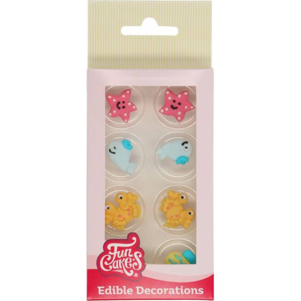 Dekorieren Sie Ihre Torten, Kekse oder Cupcakes mit diesen niedlichen Sea Life-Zuckerdekorationen von FunCakes. Das Set enthält 8 essbare Zuckerdekorationen von Fischen, Walen, Krabben und Seesterne.