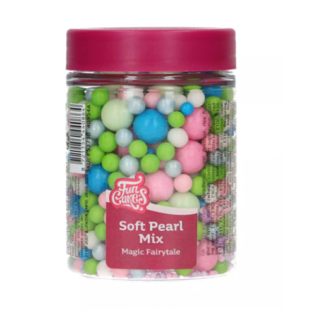 Eine Mischung FunCakes Soft Pearls Mix verleiht Ihren Kuchen, Cupcakes und Plätzchen ein wunderschönes finales Aussehen. Diese Mischung aus Perlen in verschiedenen Größen hat eine feine Textur und einen eleganten Glanz, ideal für jeden festlichen Anlass. Dank ihrer feinen Textur eignen sie sich sowohl für kleine als auch große Leckereien! Egal, ob Sie eine Hochzeits-Torte, Geburtstagsgeschenke oder Geburtstags-Cupcakes verzieren, diese Perlen zaubern immer ein magisches Aussehen! Die FunCakes Soft Pearls Mix Magic Fairytale 80 g ist perfekt zum Verzieren eines Prinzessinnen-Kuchens oder eines Meerjungfrauen-Kuchens.