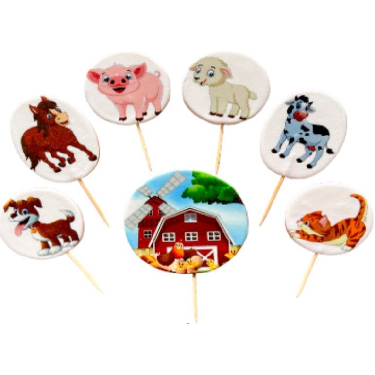 Essbares Tortendekor-Element in Form eines Zuckerstecks mit Motiven aus Bauernhof und Tieren. Die Auswahl der perfekten Verzierung ist jedoch eine komplexe Angelegenheit, da bei der Entscheidung verschiedene Aspekte berücksichtigt werden müssen, worüber die Verzierung aussagen soll und zu welchem Anlass sie verwendet wird. Backdekorationen, die in unserem Geschäft erhältlich sind, eignen sich für fast jeden Anlass.