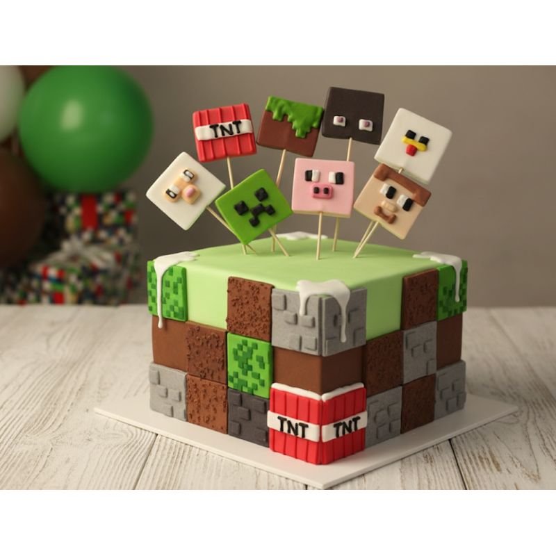 Dekorationskuchen mit Minecraft-Motiv sind das, was getan werden muss, um sie beliebter zu machen. Die wichtigsten Spielelemente sind ikonische Bilder aus Minecraft – Formen, Muster, Würfel und weitere Motive von Charakteren, die von Jungen und Älteren erkannt werden. Fondant sorgt für leuchtende Farben und präzise Details, wodurch Dekorationen wie aus dem Minecraft-Spiel aussehen. Dieses Material ist komplett einsatzbereit und hat eine glatte Textur mit perfekter Textur und Struktur. Jedes Element ist voll funktionsfähig, was sowohl aus ästhetischen als auch aus praktischen Gründen wichtig ist.