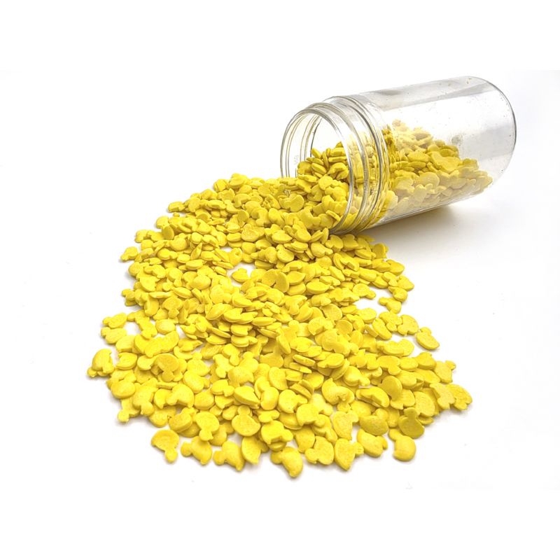 Zuckerstreusel in Form von gelben Entenküken ist eine perfekte Garnierung für das Bestreuen aller Arten von Kuchen, Lebkuchen, Gugelhupf, Muffins und Osternachten. Die Streusel sehen sehr schön aus und schmecken hervorragend. Wunderschöne Farben und die raffinierte Form der Streusel verleihen Ihrem Gebäck ein einzigartiges Aussehen. Die Vielseitigkeit der Streusel bedeutet, dass Sie sie für verschiedene Anlässe verwenden können.Der backende Duft erhält Ihrem Backwerk eine einzigartige Note mit unseren essbaren Zuckerschmetterlingen in schönen Pastellfarben. Wenn Sie die Verzierung auf eine glatte Creme streuen, kann die Feuchtigkeit sie aufweichen. Aber Vorsicht, wenn die Verzierung länger auf feuchter Creme liegt, kann sich sogar die Farbe aus den Streuseln lösen und auf der Oberseite der Creme erscheinen. Wenn Sie möchten, dass größere Dekorstücke zum Beispiel auf einer Torte haften, können Sie diese Art von Verzierung mit halbtrockener Schokolade oder Zuckerguss für Lebkuchen festkleben. Arbeiten Sie mit Streuseln am besten über einer Schüssel oder einem Backblech mit Rand.