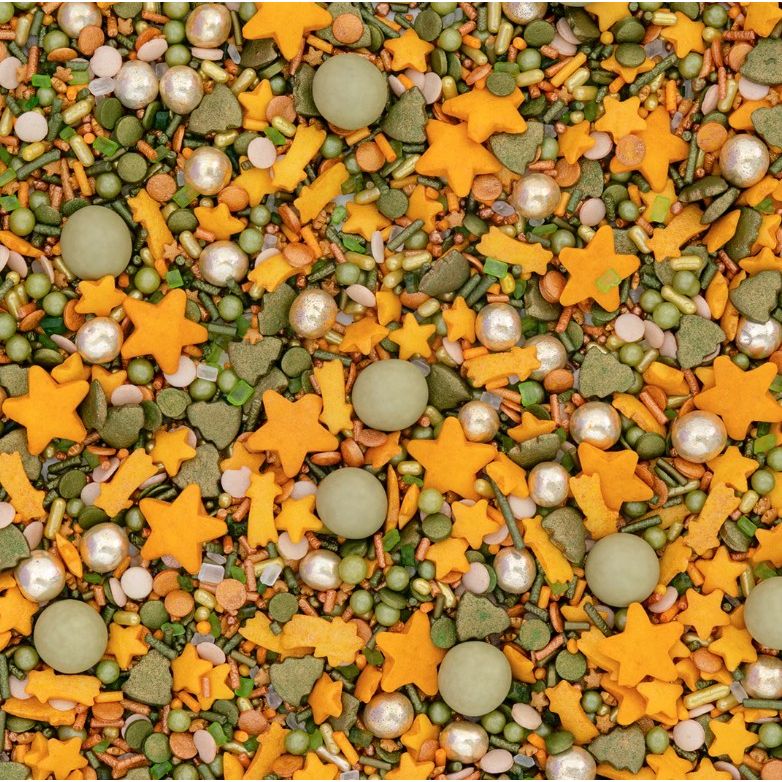 Die Dekoration ist ideal für Weihnachtsplätzchen, Lebkuchen, Cupcakes und Kuchen – einfach ein paar Sterne auf Creme oder Glasur, und deine Kreationen erstrahlen wie ein Weihnachtsbaum. Der Mix vereint knusprige und schokoladige Elemente und verleiht den Desserts neben der Schönheit auch eine extra Textur und ein geschmackliches Erlebnis.