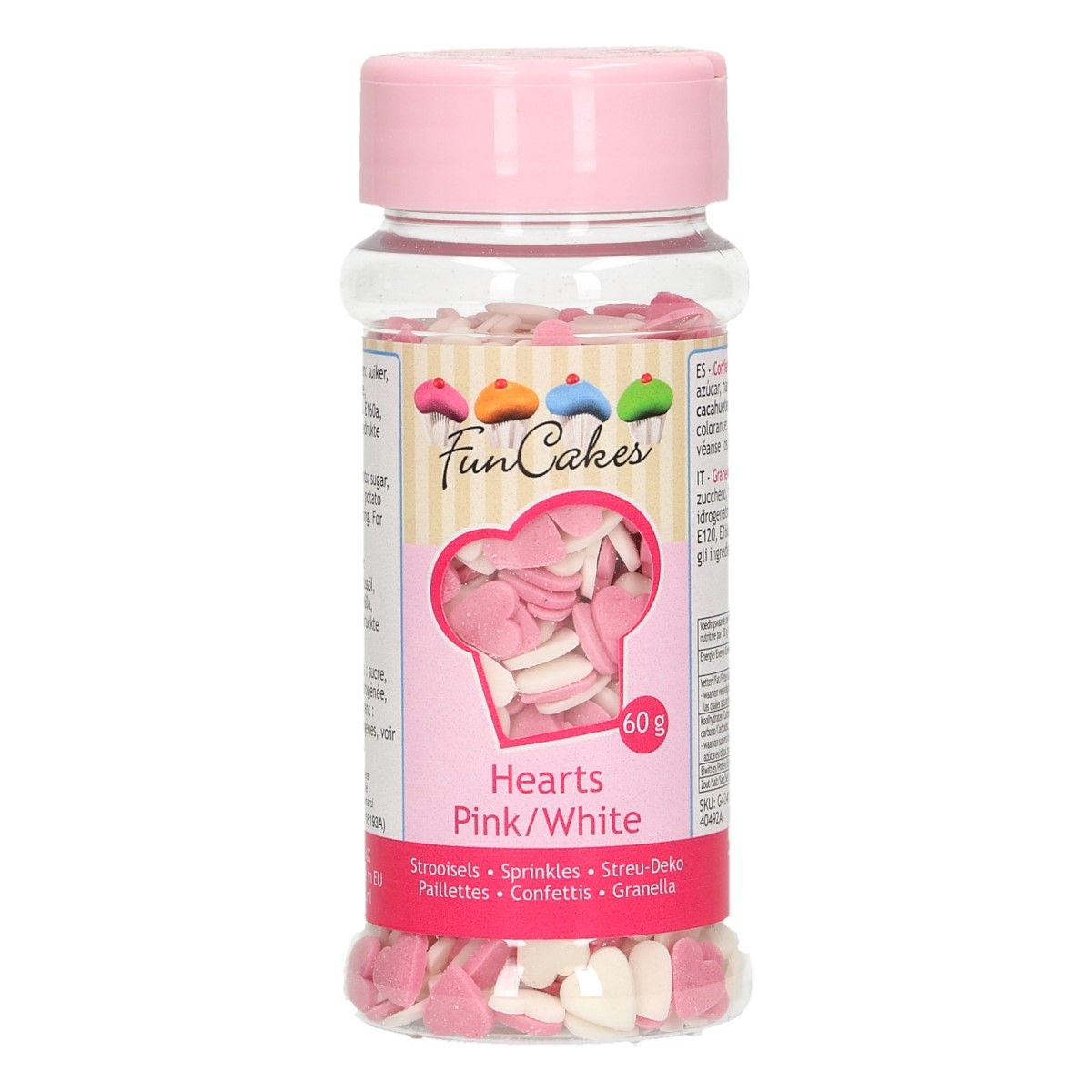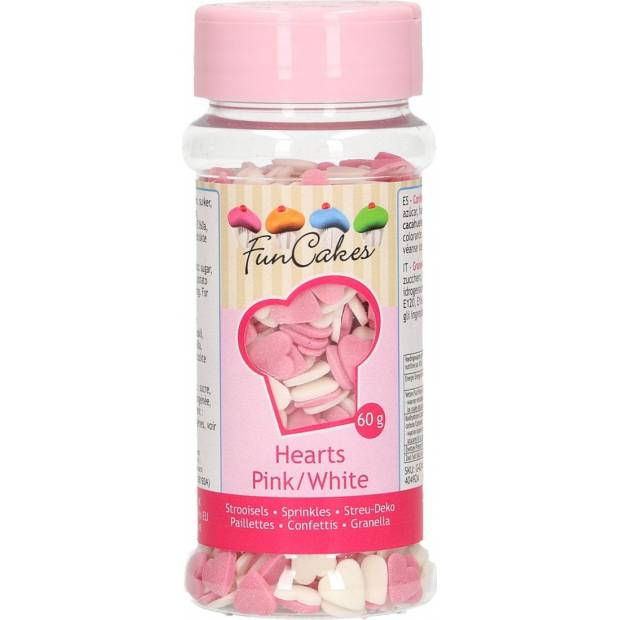 Essbare dekorative weiß-rosa Herzchen zum Dekorieren von Kuchen. Verpackung 60 g.