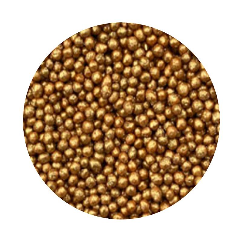 Streusel hat die Form feiner Kügelchen. Sie haben nur 2 mm Durchmesser und eine schöne goldene Metallfarbe. Es handelt sich um eine süße Streudekoration aus einer Reihe einzigartiger Produkte von ILOVECAKES. Es verändert den Geschmack der dekorierten Produkte nicht, es wird aus natürlichen Farbstoffen hergestellt und schmeckt wie Zuckerguss. Es ist eine sehr universelle Dekoration, ideal zum Dekorieren von Cupcakes, Keksen, Plätzchen, Muffins, Kuchen, Süßwaren, Backwaren, Torten, Pralinen, Trüffeln, Schokolade, Eiscreme und vielen weiteren süßen Produkten, insbesondere solcher mit Cremes und Glasur. Es eignet sich für jeden Anlass: Hochzeit, Karneval, Geburtstage, Muttertag und vieles mehr. Verarbeitet in einem praktischen Schraubdeckel-Döschen. Wenn Sie die Dekoration auf einen feuchten Crem streuen, kann Feuchtigkeit sie erweichen. Aber Vorsicht, wenn die Dekoration länger auf dem feuchten Crème liegt, kann sich auch das Farbstoff aus dem Streusel lösen und dies auf der Oberfläche der Creme zeigen. Wenn Sie möchten, dass größere Teile der Dekoration beispielsweise auf einer Torte haften bleiben, können Sie diese Art von Dekoration an Torten mit halbtrockener Schokolade oder Zuckerguss für Plätzchen befestigen. Arbeiten Sie beim Streuen idealerweise über einer Schüssel oder einem Backblech mit Rand.