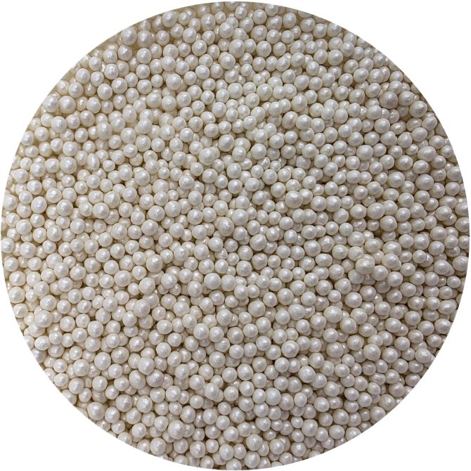 Weiße metallische Zuckerkügelchen sind eine schöne Ergänzung für glatte Oberflächen von Kuchen. Sie lassen sich auch zur Dekoration von Plätzchen, feinem Gebäck, Muffins oder Torten verwenden. Es handelt sich um universelle Dekorationen, die Ihnen helfen, Ihr leckeres Gebäck abzurunden. Ein weiterer großer Vorteil der Perlen ist ihre einfache Anwendung. Man legt sie einfach auf die von Ihnen gewählte Oberfläche und fertig. Die Perlen eignen sich hervorragend für Zuckerpaste und weitere. Sie lassen sich mit verschiedenen Cremes kombinieren. In unserem Angebot finden Sie feine Zuckerkügelchen, die Sie bedenkenlos auch mit Dessert verzehren können. Wenn Sie die Verzierung auf eine feuchte Creme streuen, kann die Feuchtigkeit daraus das Grieschenlösen; allerdings: Wenn die Verzierung längere Zeit auf einer feuchten Creme liegt, kann sich aus dem Streuverkehr auch Farbstoff lösen und auf der Oberfläche der Creme erscheinen. Wenn Sie möchten, dass größere Teile der Dekoration beispielsweise auf einer Fondant-Torte haften bleiben, können Sie diese Art der Verzierung mit halbtrockenen Schokoladen oder Zuckerglasur für Plätzchen auf die Torte kleben. Arbeiten Sie mit dem Streugut am besten über einer Schüssel oder einem Backblech mit Rand.