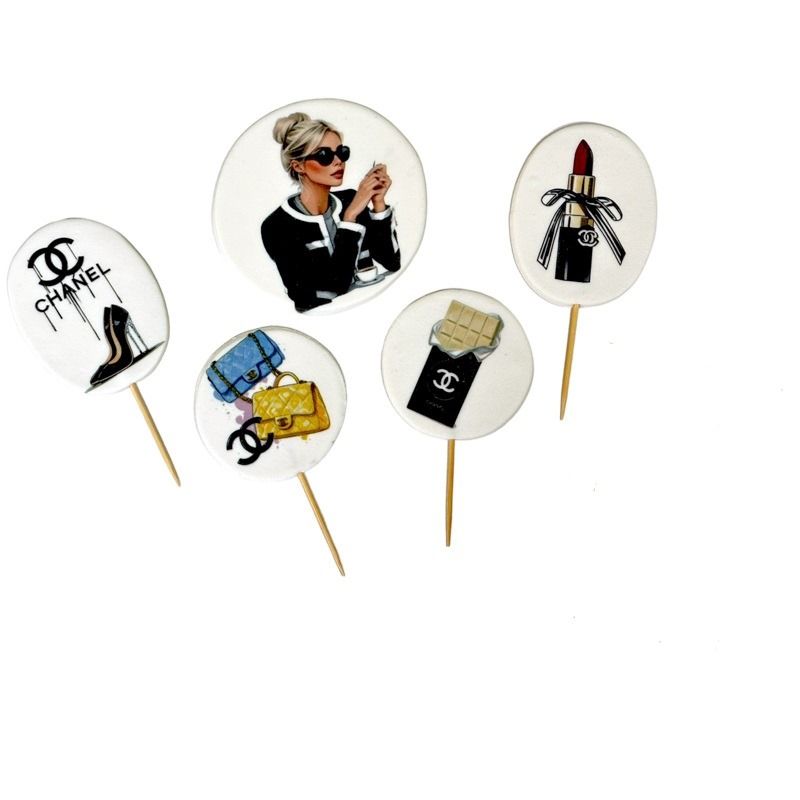 Dekorative Cake-Positions sind dekorative Elemente, die auf den Teigboden gesetzt werden. Dadurch bekommen sie eine persönliche Note und heben Typ und Bedeutung der gefeierten Veranstaltung hervor. Aus diesem Grund können sich Teller/Topper stark voneinander unterscheiden, da sie dem Stil jeder Gelegenheit angepasst werden müssen. Cake-Toppers mit dem Motiv Coco Chanel werden jede Frau erfreuen, die Mode liebt und diese berühmte Modeikone schätzt. Die einzelnen Elemente aus leichtem Material, auf dünnen Stangen platziert, lassen sich leicht in Kuchen, Cupcakes oder andere Desserts stechen. Sie können sie beliebig anordnen und so Ihre eigenen Kompositionen erstellen. Der Kuchen erhält dadurch ein einzigartiges Aussehen, ohne komplizierte Konditorentechniken verwenden zu müssen.