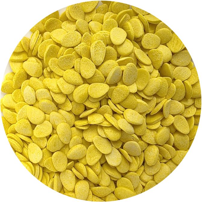 weißer Zucker, Weizen Mehl, Maissirup, raffiniert Palmöl, modifizierte Stärke, Verdickungsmittel: E412, E415, E466, E414; Glänzmittel Kapol (Lack, pflanzliches Öl), Talkum, Lebensmittelfarbe: E102.