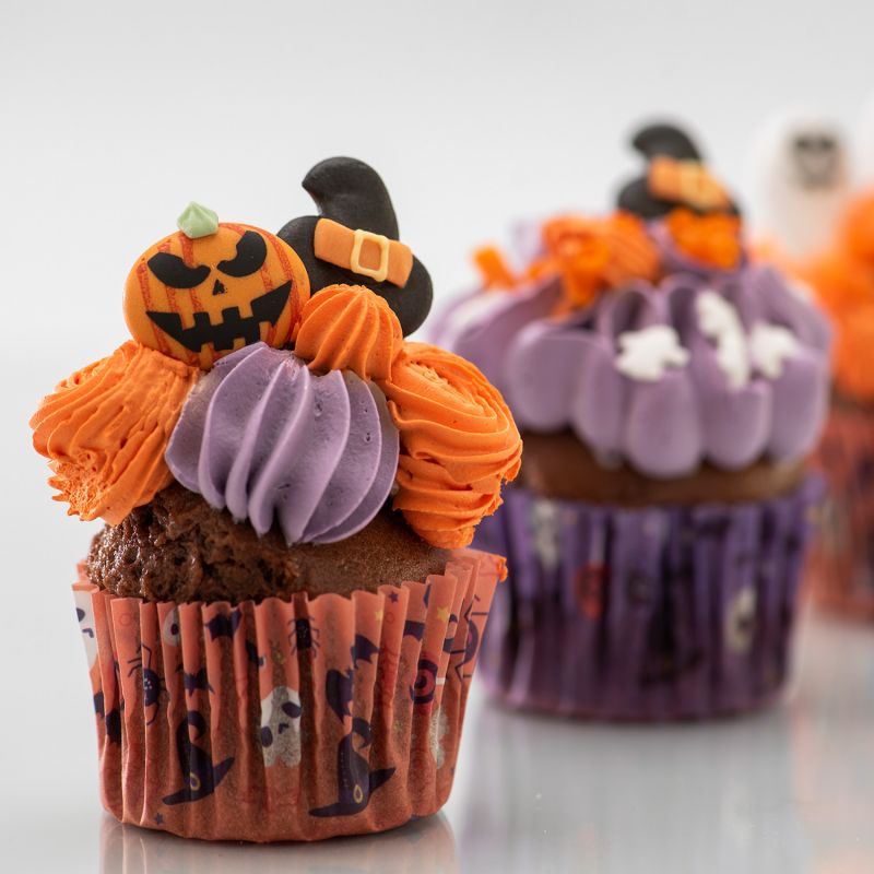 Entdecken Sie unsere Zuckerverzierungen zum Backen, speziell entworfen zum Dekorieren von Cupcakes, Torten, Keksen und Desserttischen während dieser Feiertage. Kürbisse, Geister und vieles mehr, hergestellt, damit Ihre Kreationen einen lustigen, bunten und köstlichen Touch erhalten. Mit diesen gruseligen Zuckerdekorationen von Dekory ist Halloween jetzt wahrhaftig. Das Set enthält 4 verschiedene, detaillierte Halloween-Figuren, die Sie zum Dekorieren von Torten, Muffins und Keksen verwenden können.