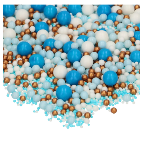 FunCakes Soft Pearls Mix-Perlen mischen Ihrem Kuchen, Cupcakes und Gebäcken ein hübsches Finish. Diese Perlenmischung unterschiedlicher Größen hat einen feinen Biss und einen eleganten Glanz, perfekt für jeden festlichen Anlass. Dank ihres feinen Bisses eignen sie sich ideal für Jung und Alt! Ob Sie eine Hochzeitstorte dekorieren, Geburtstagsgeschenke für Kinder oder Geburtstag-Cupcakes, diese Perlen schaffen immer ein magisches Aussehen! FunCakes Soft Pearls Mix Blue Celebration-Perlenmischung ist ideal zum Verzieren einer Kuchen für eine Geschlechtsenthüllung oder Geburtstagsfeier.